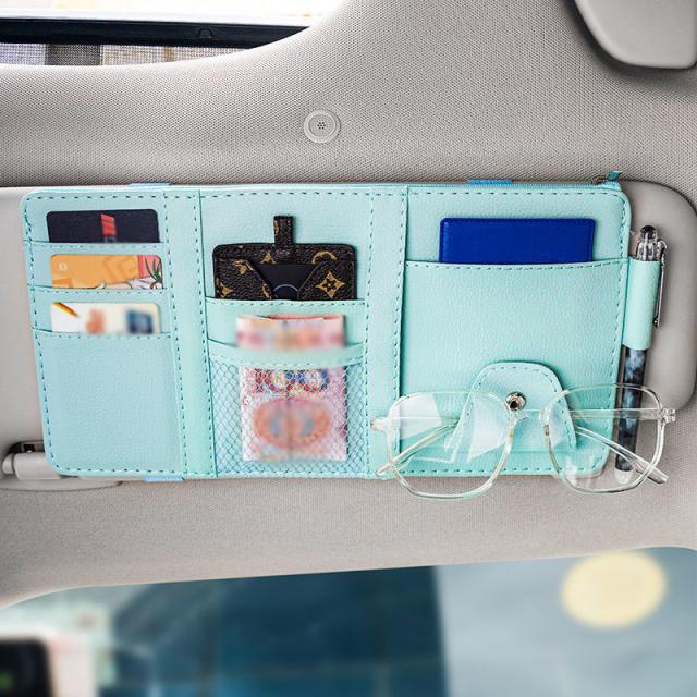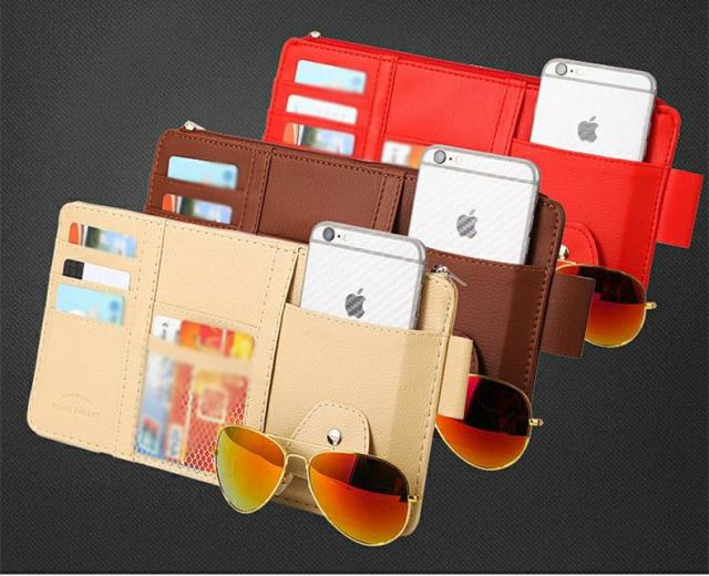 送料無料 車 サンバイザー 収納 車内 収納ポケット 多機能 小物入れ PU カー用品 CD ボールペン サングラス スマホ 取り付け簡単 眼鏡収納 インナーポケット付き
