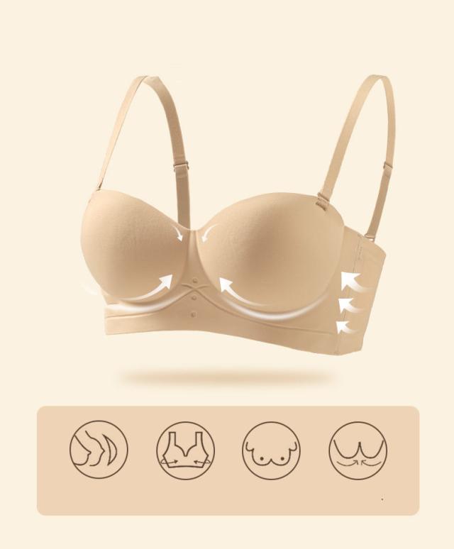 ブラ 下着 ブラジャー レディース ノンワイヤー ワキ肉 紐無し ストラップレス 対応 大きいサイズ 盛れる シンプル