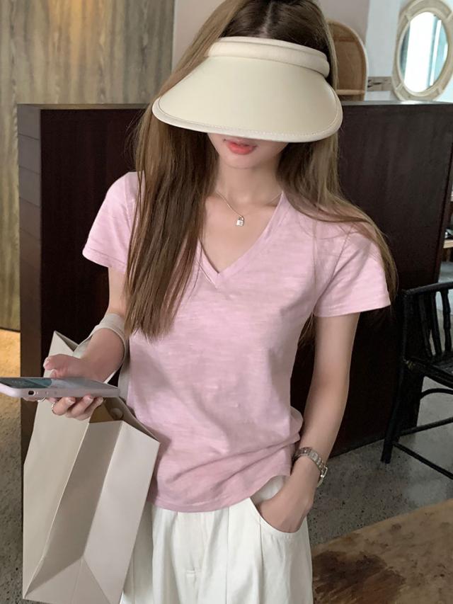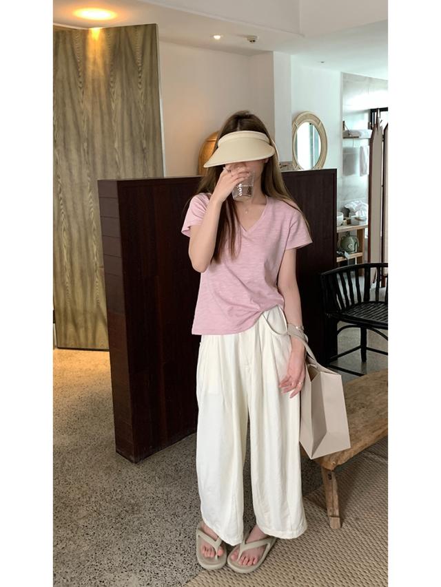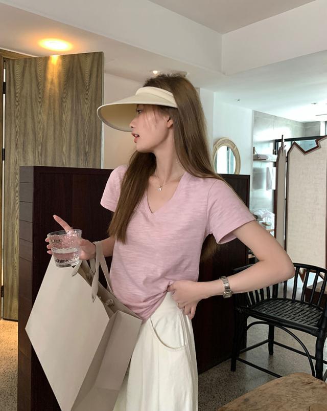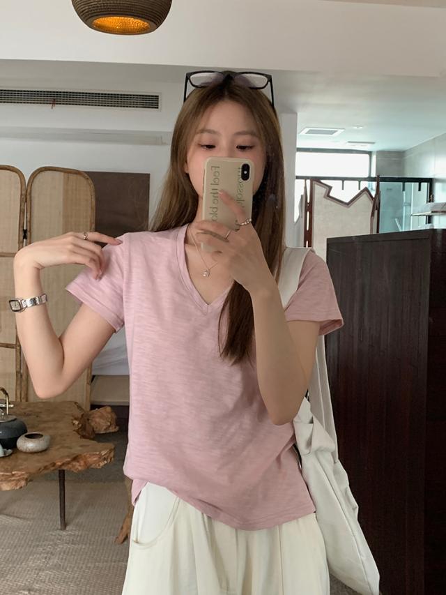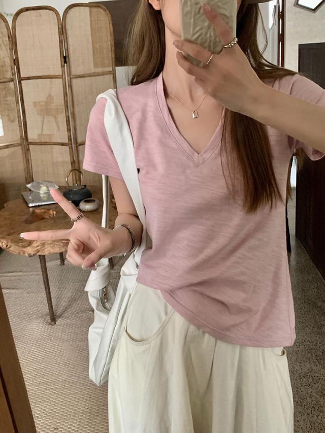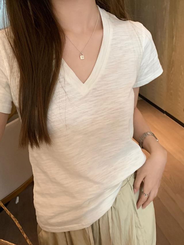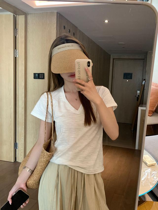 vネックtシャツ レディース 夏 半袖 コットン シンプル 着?せ きれいめ カジュアル 通気