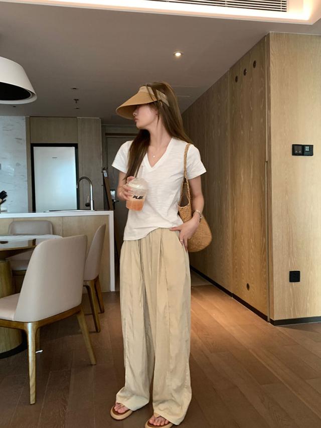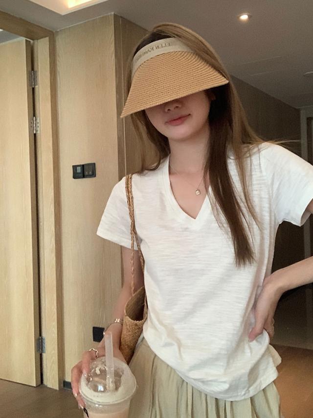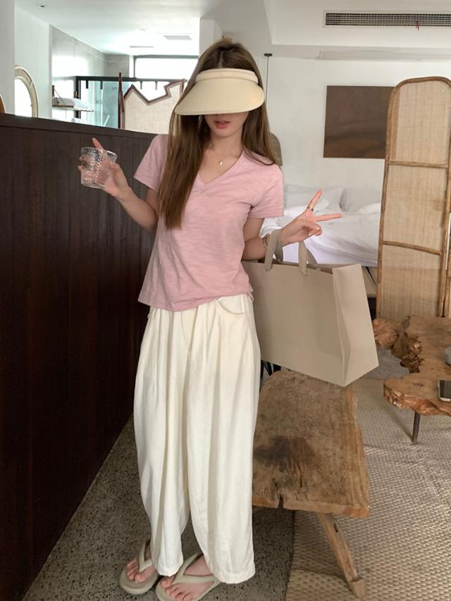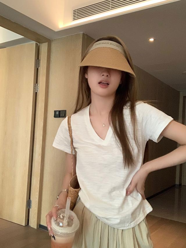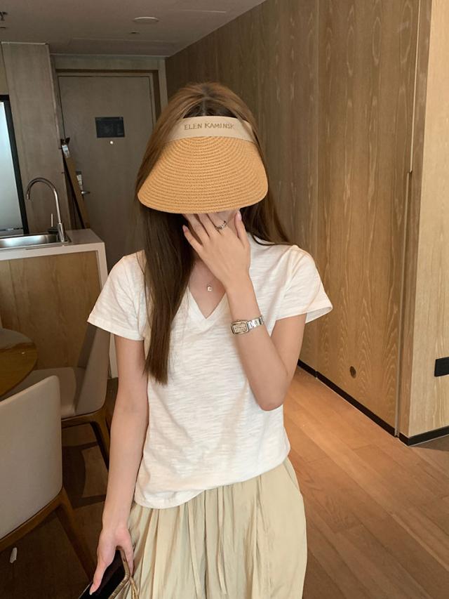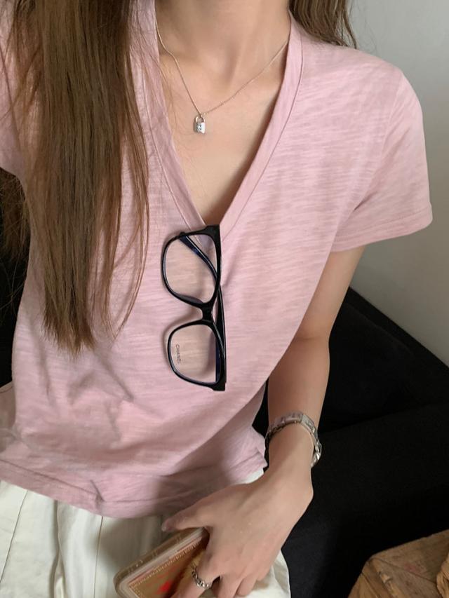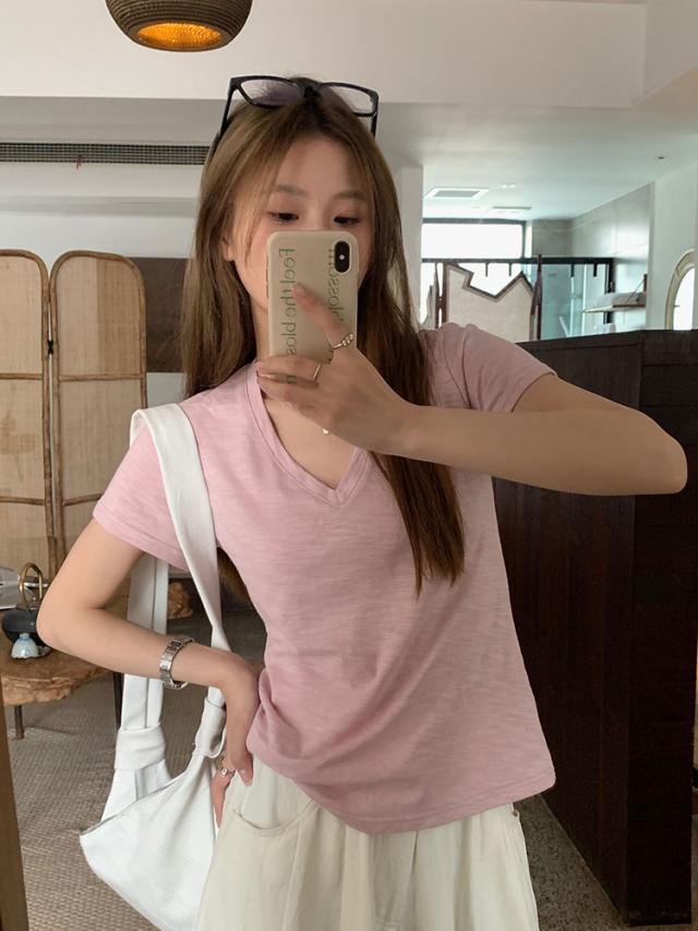 vネックtシャツ レディース 夏 半袖 コットン シンプル 着?せ きれいめ カジュアル 通気
