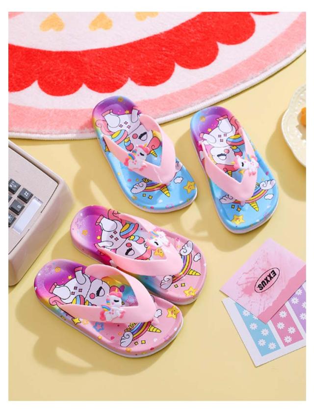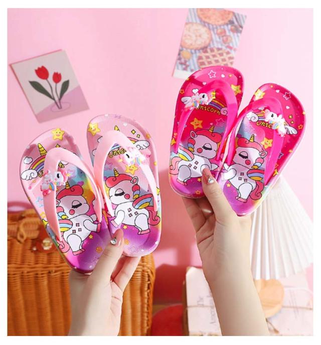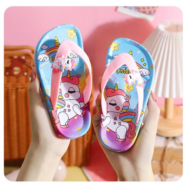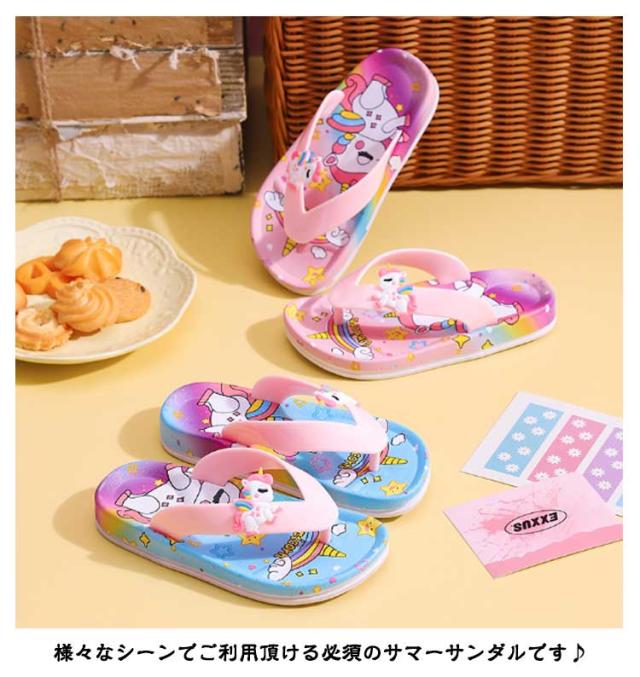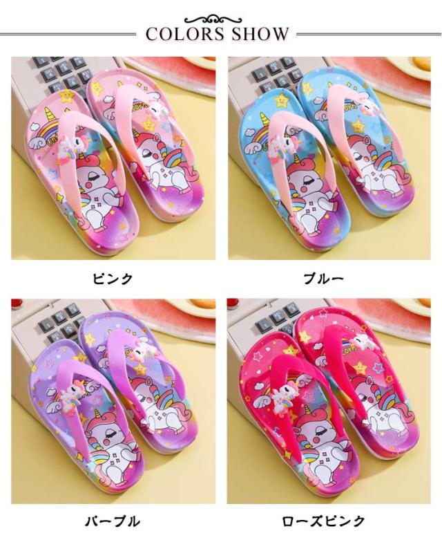 【送料無料】 ビーチサンダル キッズ ジュニア トングサンダル トングタイプ バスサンダル キッズ ビーチサンダル スリッパ 子供用 ユニコーン 室内履き 洗える 軽量 柔らかい 滑り止め ルームシューズ 女の子 水遊び お風呂場 散歩 ジュニア 通園 女児
