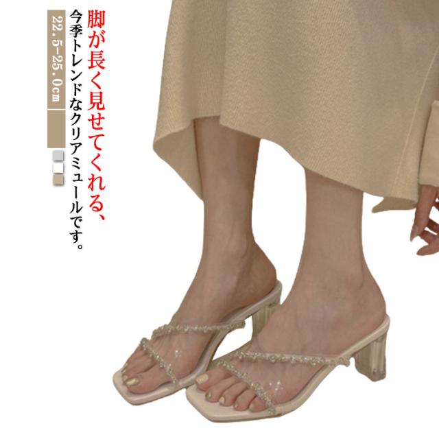 サンダル レディース ミュール クリアサンダル スクエアトゥ クリアヒール ストラップサンダル キラキラ ミュールサンダル 美脚 キラキラシューズ 疲れない 歩きやすい 春夏 おしゃれ 22.5-25.0cm