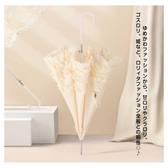 | レースがたくさんついたかわいい日傘。人気のロリータ系アシスト用品です。 ゆめかわファッションから、甘ロリやクラロリ、ゴスロリ、姫など、ロリィタファッション全般との相性◎♪ UPF50+ 最高値で日焼け!紫外線と光のカット効率を高めるために、生地裏に黒樹脂コーテイングを施しています。 ジャンプ式!オシャレだけではない、しっかりとした骨組み構造。 強い雨でも壊れにくい。耐風じようぶな設計で長く使える。 | |