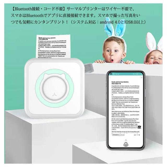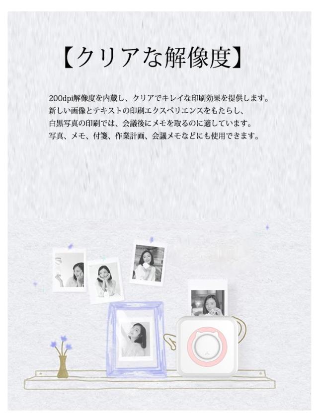 【感熱紙5巻付】サーマルプリンター モバイル プリンター Bluetooth 接続 USB 充電式 スマホプリンター ラベルライター 感熱式 インク不要 専用アプリ 写真印刷 手帳作り リスト ラベル メモ印刷 メモプリンター 多機能