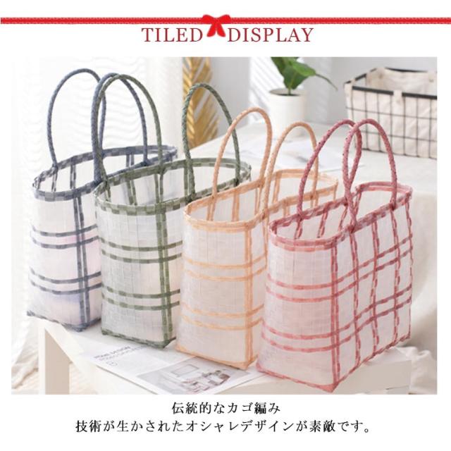かごバッグ トート 大きめ ビニール 手提げ トートバッグ スクエア 透明 クリア メルカドバッグ レディース 耐水 浴衣 ビニールバッグ 軽量 軽い カゴバッグ 籠バッグ おしゃれ 買い物かご エコバッグ お花見 温泉 プール プラスチック 【送無】