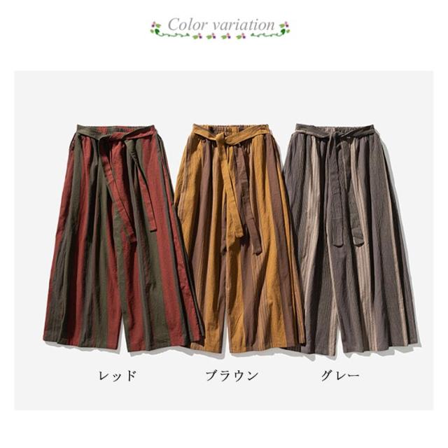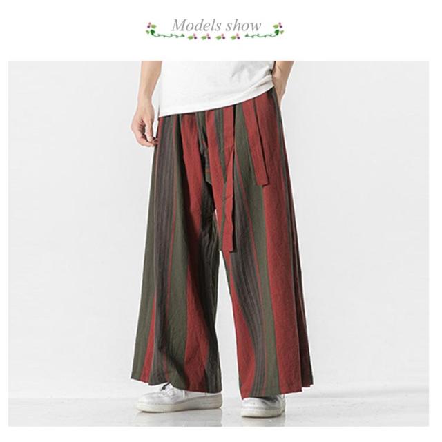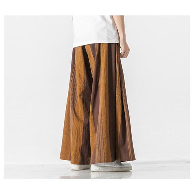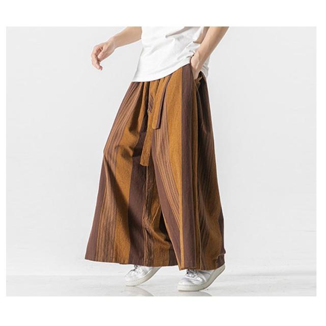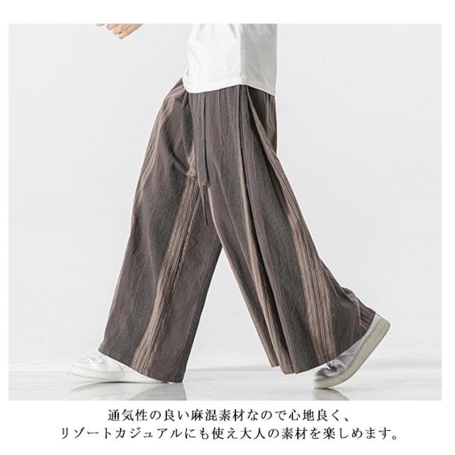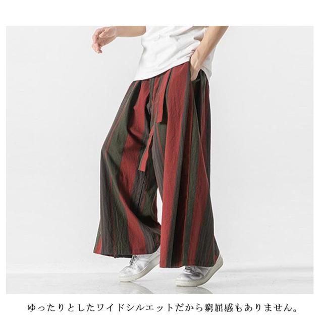 サルエルパンツ メンズ ガウチョパンツ リネン パンツ 麻 綿麻 夏 綿 麻 ワイドパンツ メンズ 涼しいズボン ゆったり ストライプ柄 夏ズボン メンズファッション 夏服 清涼な着心地 夏 ボトムス 袴パンツ イージーパンツ ワイド 春服 春夏 ボトムス 送料無料