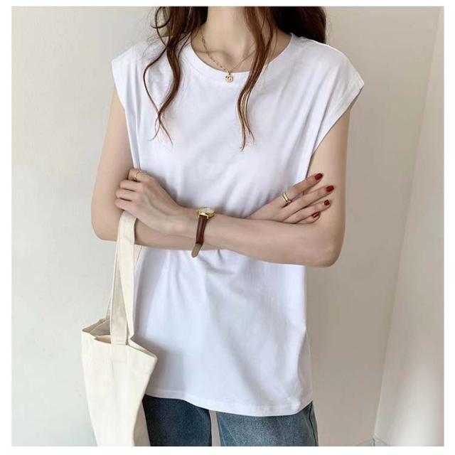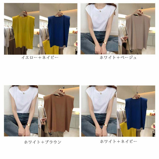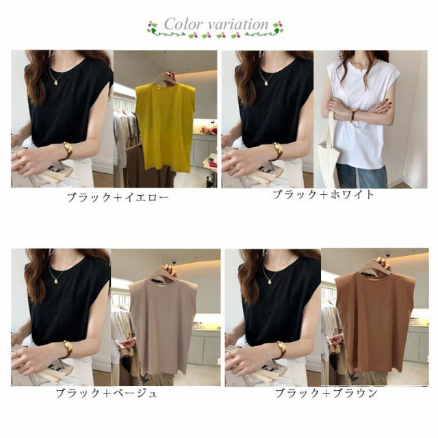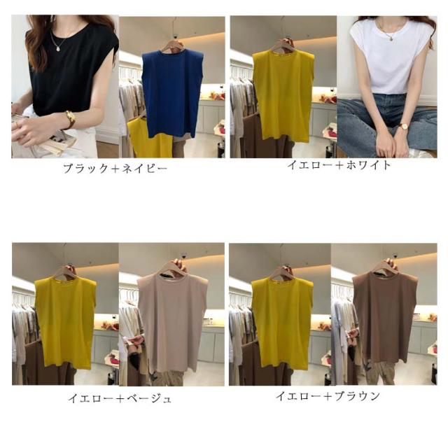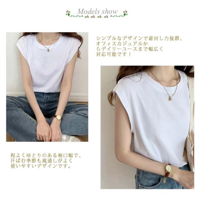 2枚セット タンクトップ レディース Tシャツ カットソー フレンチスリーブ クルーネック ノースリーブ トップス プルオーバー インナー 無地 大きいサイズ 体型カバー ゆったり 夏 半袖 ロンT シンプル 着回し カジュアル オフィス 送料無料