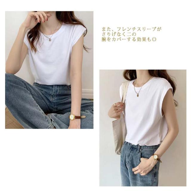 | 肩回りを綺麗にカバーしてくれるフレンチスリーブtシャツ。 程よくゆとりのある袖口幅で、汗ばむ季節も風通しがよく使いやすいデザインです。 また、フレンチスリーブがさりげなく二の腕をカバーする効果も◎ ゆったりとしたデザインのため、春夏に一枚で合わせていただくのはもちろん、秋口にはジャケットのインナーとしてお使いいただくのも素敵です。 シンプルなデザインで着回し力抜群、オフィスカジュアルからデイリーユースまで幅広く対応可能です! | |