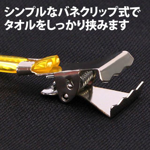 ・水を吸って重量がある状態でのタオルを挟むと自重で落下の恐れがあるため、十分に絞って使用してください。