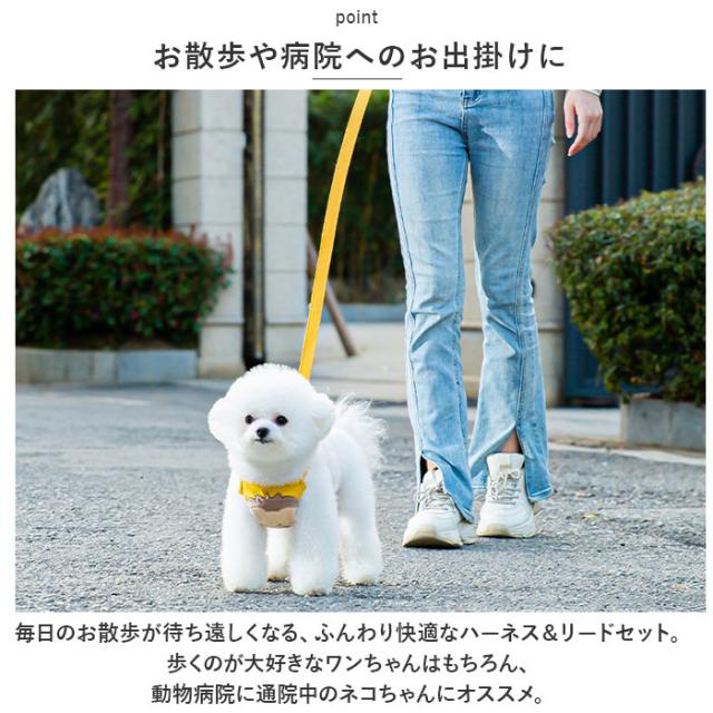犬 リード ハーネス 猫 通販 ペット 胸当て ハーネス&リード セット 引きひも 胴輪 夜反射 通気性 抜けない 面テープ いぬ イヌ ネコ ねこ ペットグッズ お出かけ おしゃれ かわいい