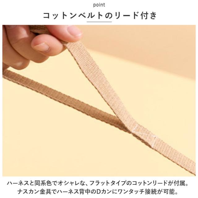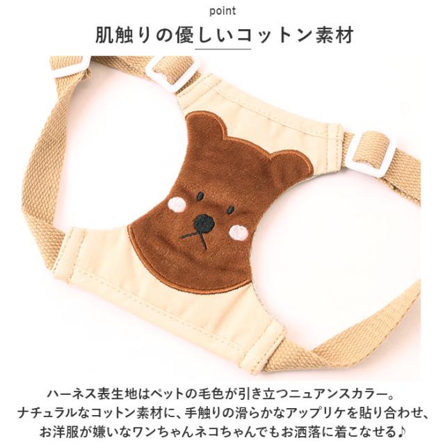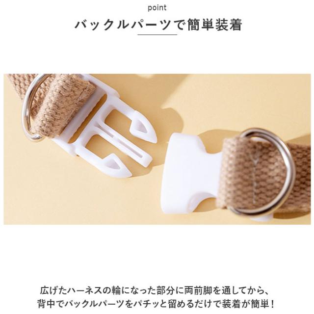 | 商品説明 | ・可愛らしいクマさん&ライオンのアップリケがアクセント。ペット用ハーネス&リードセットが新登場。 【肌触りの優しいコットン素材】 ・ハーネス表生地はペットの毛色が引き立つニュアンスカラー。ナチュラルなコットン素材に、手触りの滑らかなアップリケを貼り合わせ、お洋服が嫌いなワンちゃんネコちゃんでもお洒落に着こなせる♪ 【裏面メッシュで快適】 ・身体に当たるハーネス内側の生地には、通気性のよいメッシュ素材を採用。汗ばむ季節やいっぱい歩くワンちゃんでもサラサラと快適。 【バックルパーツで簡単装着】 ・広げたハーネスの輪になった部分に両前脚を通してから、背中でバックルパーツをパチッと留めるだけで装着が簡単! 【コットンベルトのリード付き】 ・ハーネスと同系色でオシャレな、フラットタイプのコットンリードが付属。ナスカン金具でハーネス背中のDカンにワンタッチ接続が可能。 【ねじれを防いでお散歩スムーズ】 ・ナスカン金具とリードのジョイント部分が360度回転するので、お散歩中のリードのねじれも気にならない♪ 【ペットの身体に優しいつくり】 ・リードで引っ張られる力を、胸や肩など身体全体で受け止めるハーネスタイプだから、ペットへの身体への負担を軽減。首の骨が細く、呼吸器に負担がかかりやすいチワワやトイプードルなどの小型犬にも最適。 【ご家庭で簡単お洗濯!】 ・ご家庭で手軽に手洗いができるから、いつでも清潔!キレイ好きなワンちゃんネコちゃんに気持ちよく着せてあげられる♪ 【ピッタリサイズをチョイス!】 ・ペットの身体のサイズに合わせて選べるS・M・Lの3サイズ展開。Sサイズは、ネコちゃんも着用できるサイズ感♪ 【お散歩や病院へのお出掛けに】 ・毎日のお散歩が待ち遠しくなる、ふんわり快適なハーネス&リードセット。歩くのが大好きなワンちゃんはもちろん、動物病院に通院中のネコちゃんにオススメ。 |