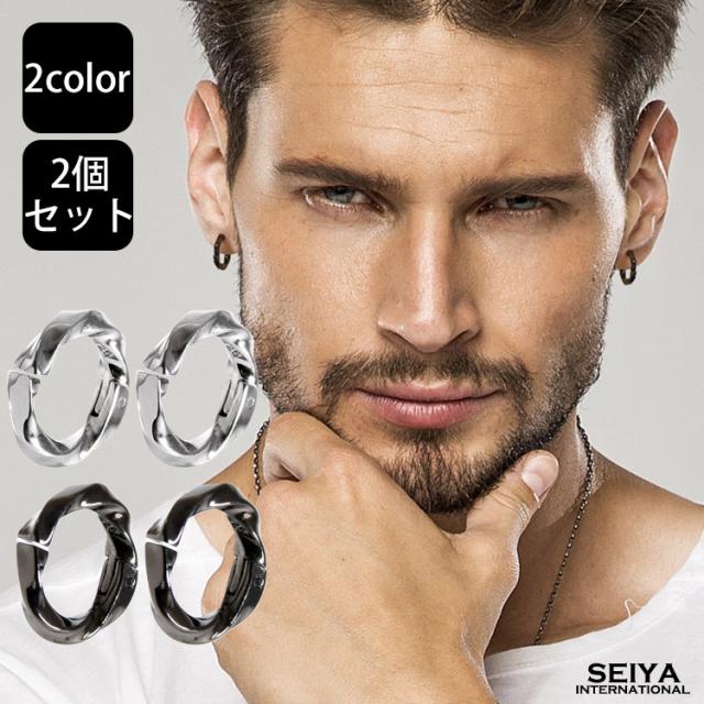イヤリング メンズ フェイクピアス イヤーカフ ツイストフープ 両耳 2個セット シルバー ブラック イヤカフ メンズイヤリング フープイヤリング イヤカフス 穴 開けない ピアス 開けないピアス 送料無料