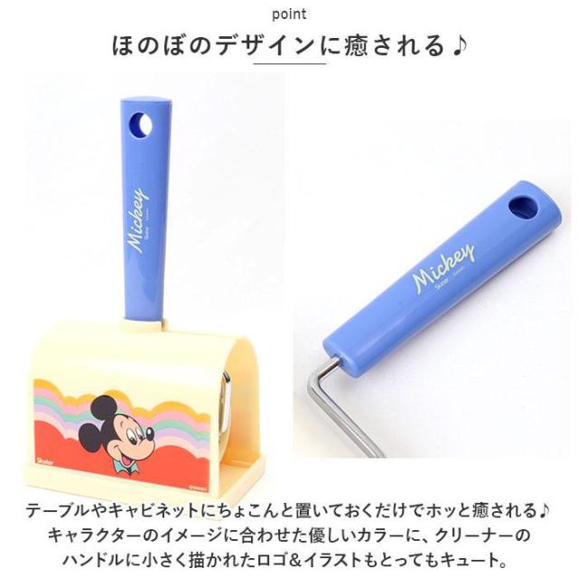 ちょこっとしたお掃除に、サッとコロがして使える!大人気キャラクターの絵柄が可愛い「ケース付き粘着クリーナー」【サッと使えるミニサイズ】ソファやカーペットの上で気になる小さなゴミや、お出掛け前のお洋服のホコリ取りにササっと使える、ミニサイズのローラー粘着クリーナー。【スタンドタイプのケース付き】お馴染みのキャラクターたちが描かれたケースにクリーナーをスライドさせて収納すれば、魅せるインテリアに早変わり!【すぐに使える粘着テープ付き】粘着テープが1ロール付属しているので、届いたらすぐに使えちゃうのも嬉しいポイント。(※取り換え用ロールは、雑貨店やホームセンターで販売されている横幅:約80mm×紙芯内径38mmのものをお使いください。)【ほのぼのデザインに癒される♪】テーブルやキャビネットにちょこんと置いておくだけでホッと癒される♪キャラクターのイメージに合わせた優しいカラーに、クリーナーのハンドルに小さく描かれたロゴ&イラストもとってもキュート。