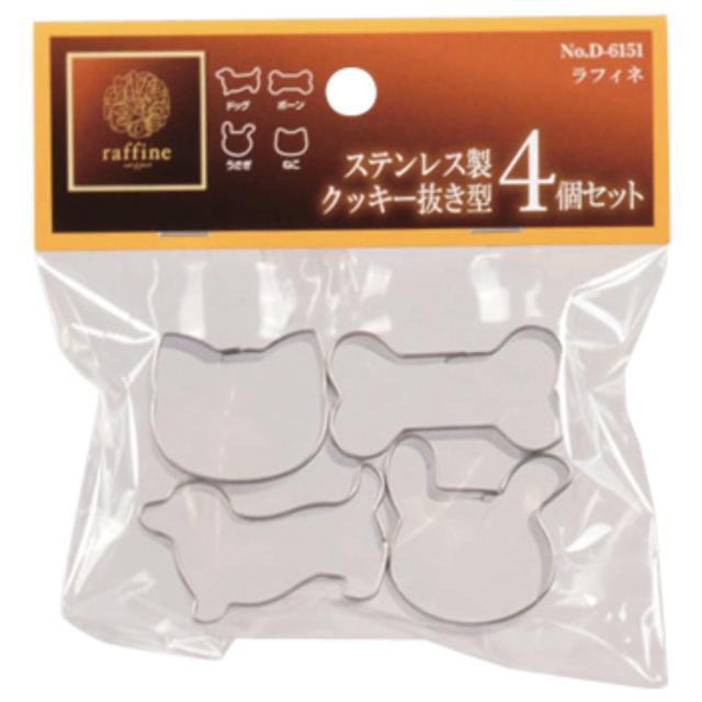 クッキー型 ラフィネ ステンレス 4個入り ( 食洗機対応 動物 アニマル 抜き型 抜型 型抜き 型抜 クッキー お菓子 おやつ チーズ かわいい 盛り付け 飾り付け イベント 手作り てづくり お菓子作り )