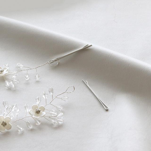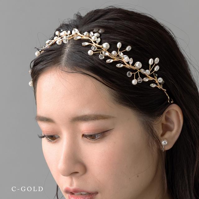 | パールやラインストーンが華やかなリーフやフラワーのモチーフをメインとした3種類のヘッドドレスです。 両端にヘアピンを差し込み、カチューシャ風にしたり、バッグスタイルに合わせたりとお好きなスタイリングが楽しめます。 ワイヤーワークで自由に角度も調整できるので、ヘッドラインに合わせて美しいフォルムを実現し、ドレスにも和装にも合わせやすいデザインです。 | |