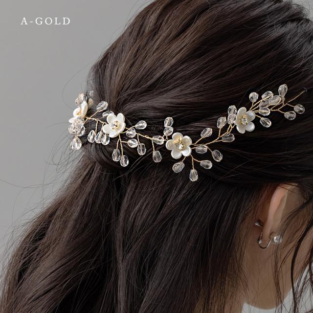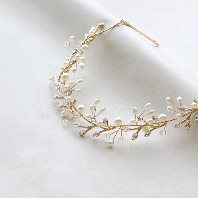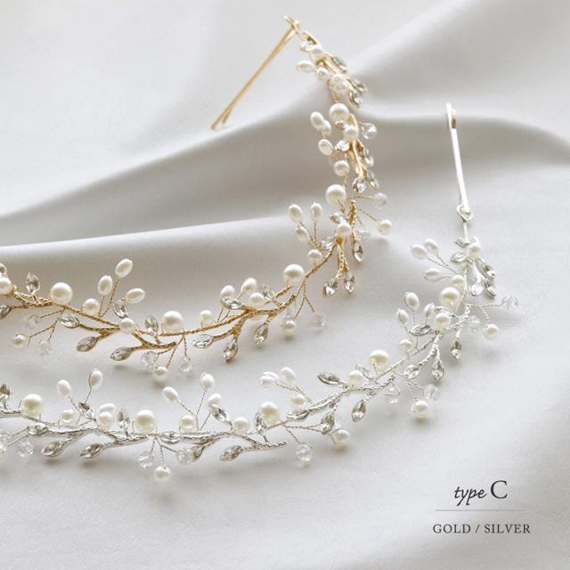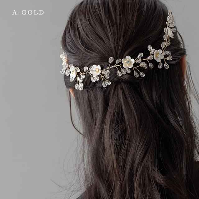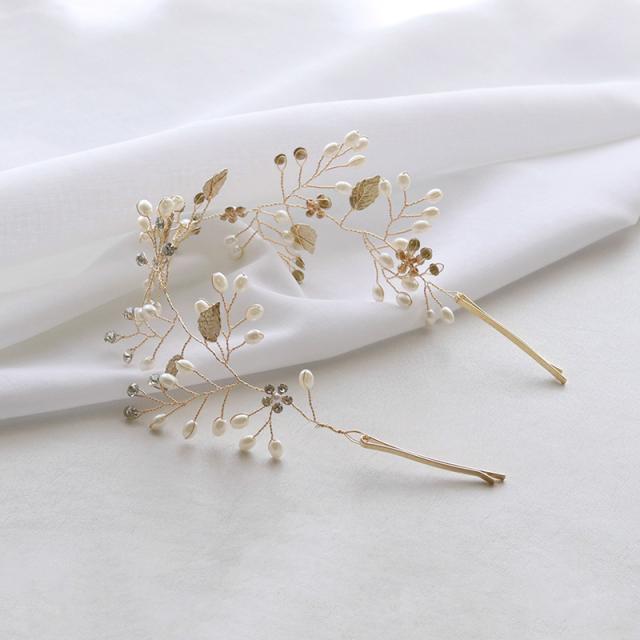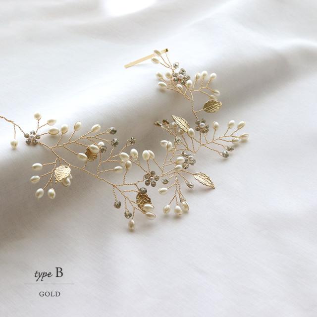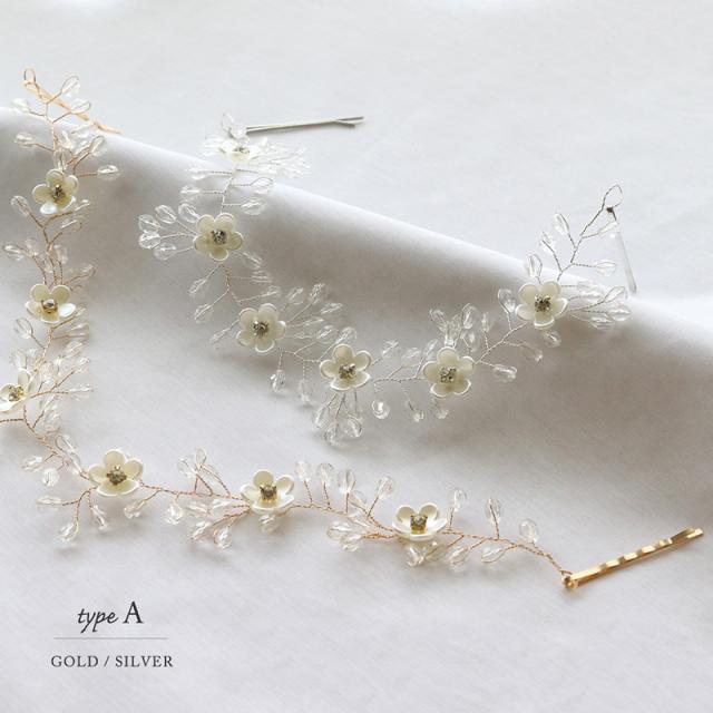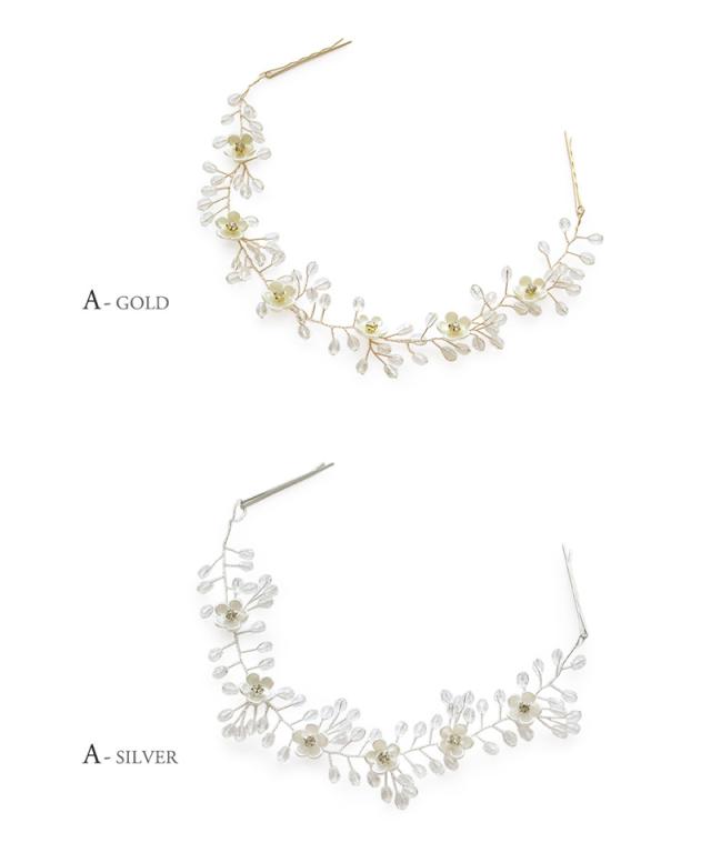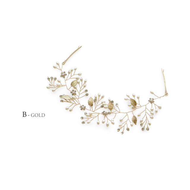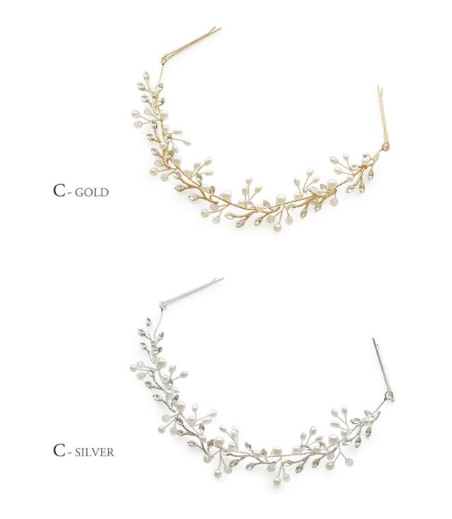 パールやラインストーンが華やかなリーフやフラワーのモチーフをメインとした3種類のヘッドドレスです。