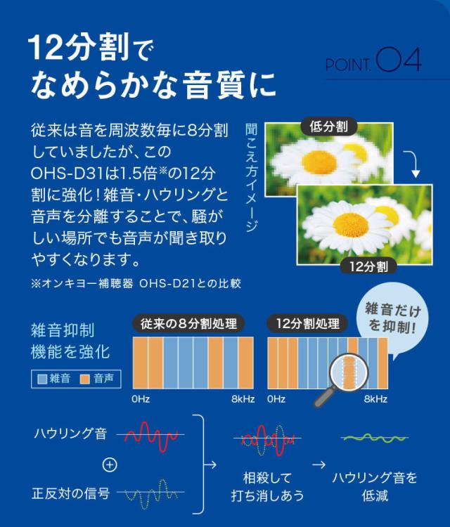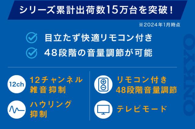 デジタル12チャンネル搭載!「処理能力」が1.5倍※に。(※同社旧シリーズと比較)有名音響メーカー「ONKYO」の新型補聴器が登場。ハウリングも防ぐので、とても快適。