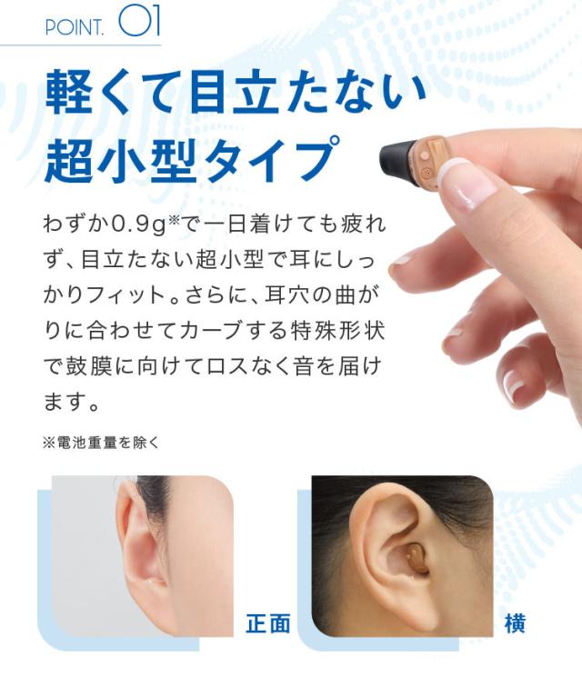 耳穴にすっぽり。周りの人もご自身も装着を感じないほど小型。