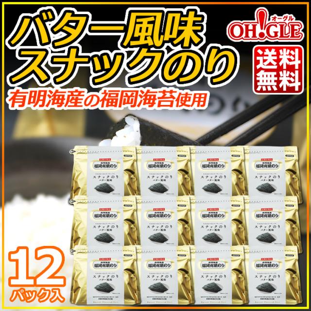 《福岡のり》バター風味スナックのり 12パック 初摘み限定☆有明海産の福岡海苔を使用