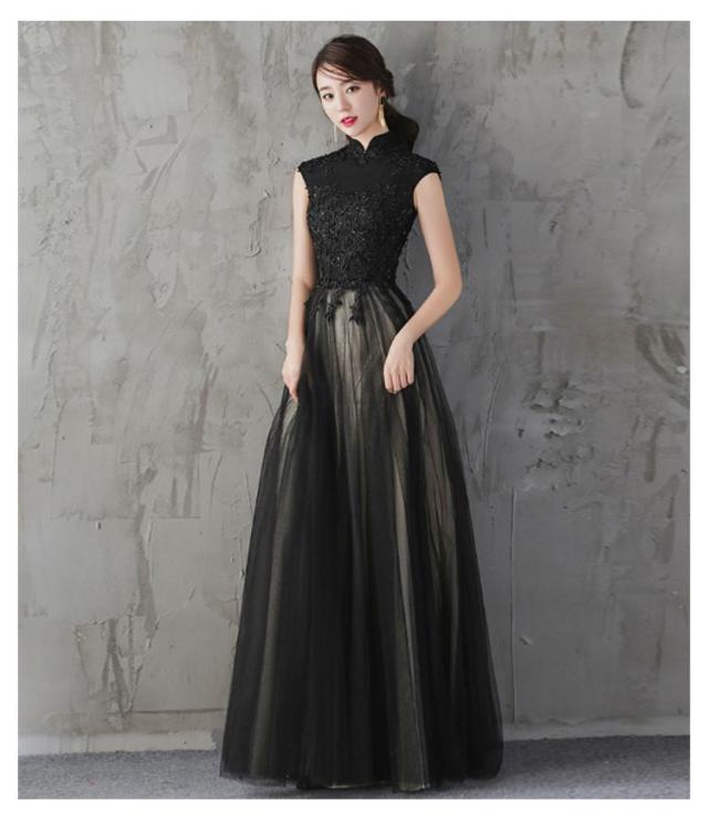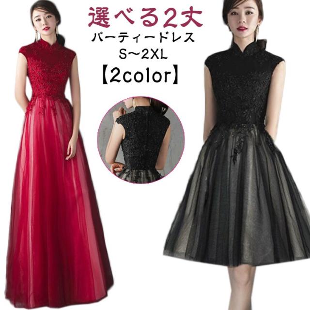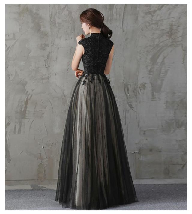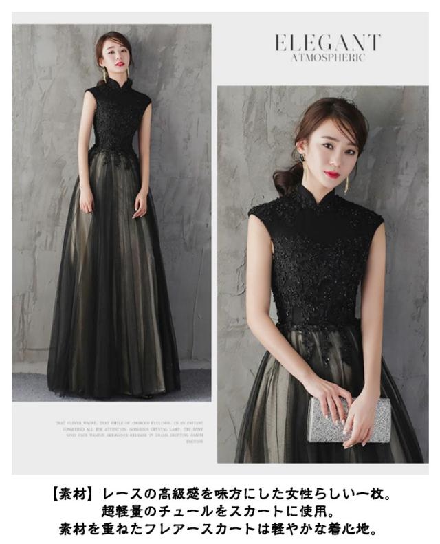パーティードレス 結婚式 ワンピース ロングドレス 詰襟 ドレス レース チュール Aライン 演奏会 ロング丈 イブニングドレス カクテルドレス 二次会 花嫁 ピアノ 発表会 ノースリーブ ウエディングドレス お呼ばれ 入学式 黒 フォーマルドレス 成人式 同窓会 上品