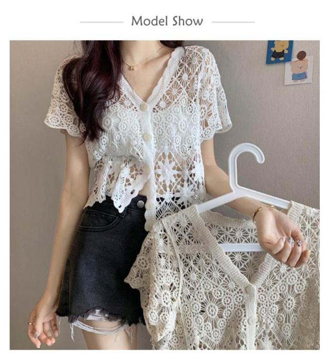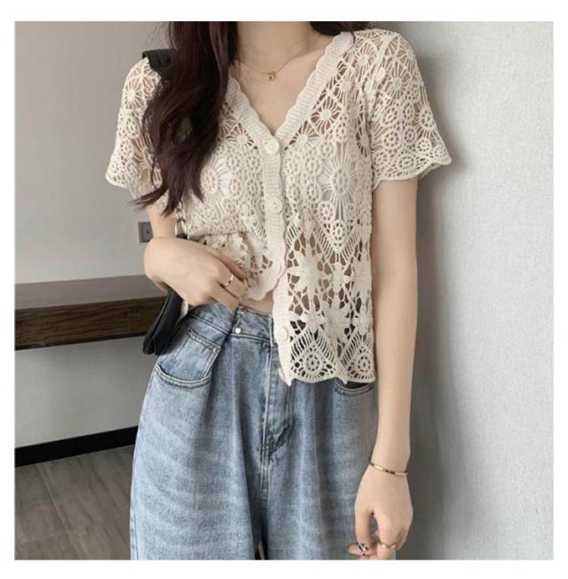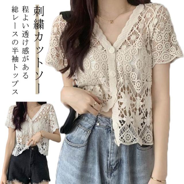 透かし編み ニット 半袖 サマーニット レースTシャツ 花柄レース レディース きれいめ 上品 ニットカーディガン 刺繍カットソー カーディガン ブラウス 半袖 トップス 春夏 おしゃれ トップス ファッション 羽織り 通勤 デート お出かけ 重ね着 ギフト 送料無料