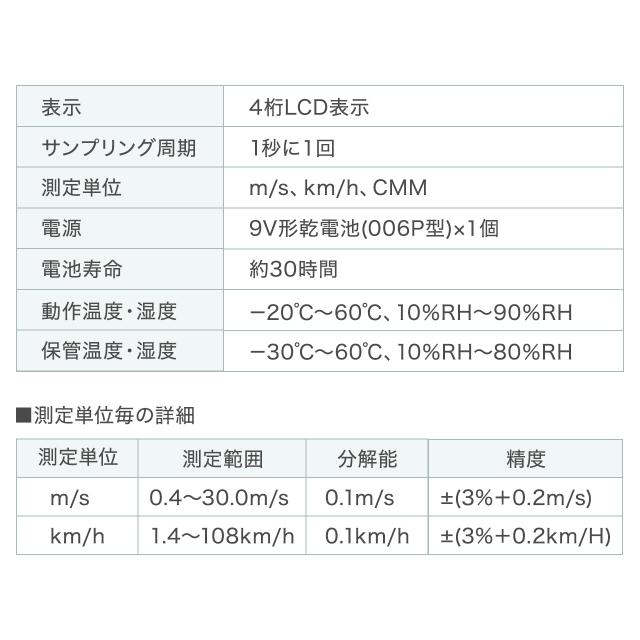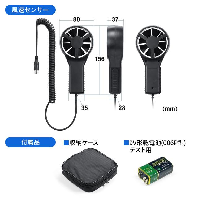 ■サイズ:デジタル風速計/約W62×D32×H158mm、風速センサー/約W80×D37×H156mm(※ケーブル除く)■総重量:約252g