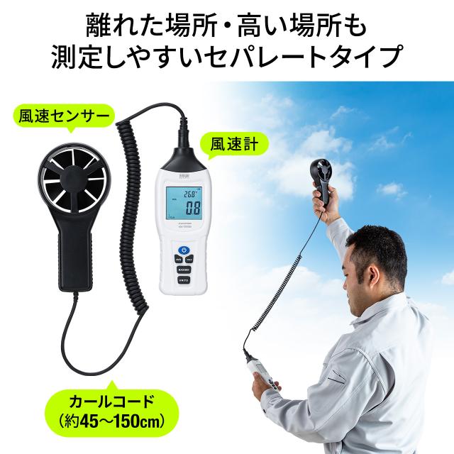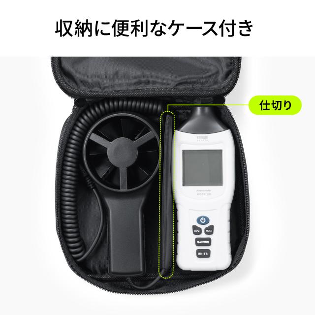 ⇒ご購入の前にご確認下さい電源を入れるだけで簡単に測定できる、デジタル風速計。様々な計測が可能で、バックライトで暗い場所でも確認可能。センサーと本体が分かれたセパレート式で計測しやすくデジタル表示で見やすい、小型デジタル風速計。気温測定機能付き。専用収納ケース付き。【WEB限定商品】