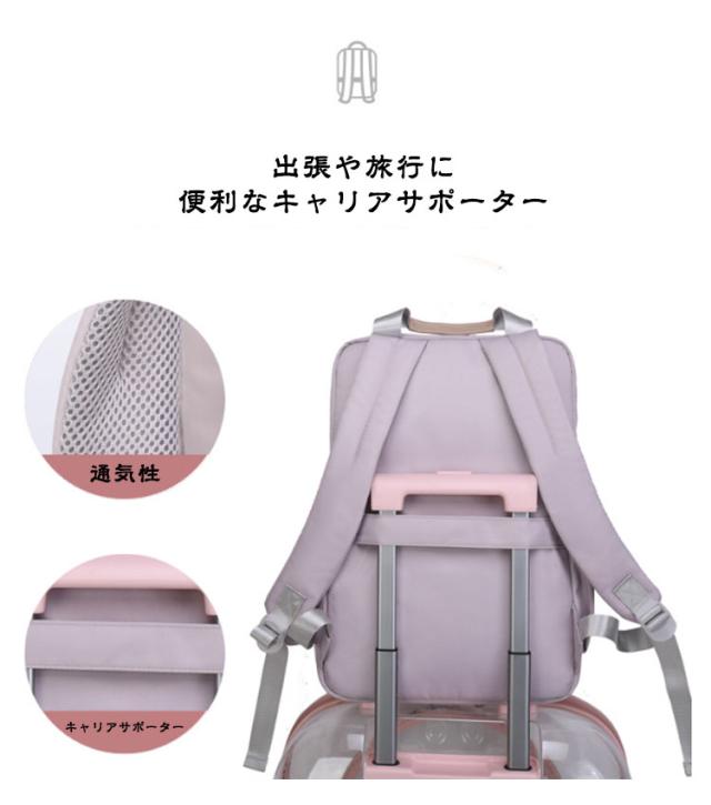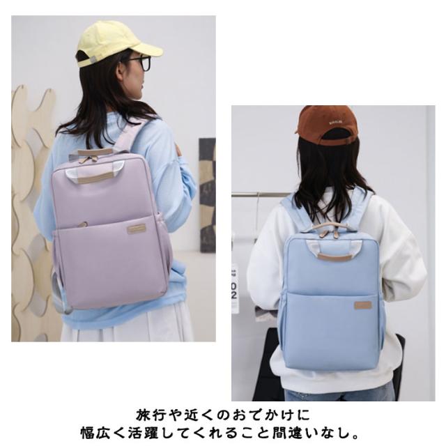 | 【大容量かつ0.4kgのスリム軽量で14-15.6inch PCも余裕で入る収納系リュック】 軽い素材を使用し配色が効いた撥水加工を施しているので、 旅行や近くのおでかけに幅広く活躍してくれること間違いなし。 大容量なので、通勤通学や普段のお出掛けなどのデイリー使い、 旅行やマザーズバッグと、様々なシーンで大活躍間違いなしです。 | |