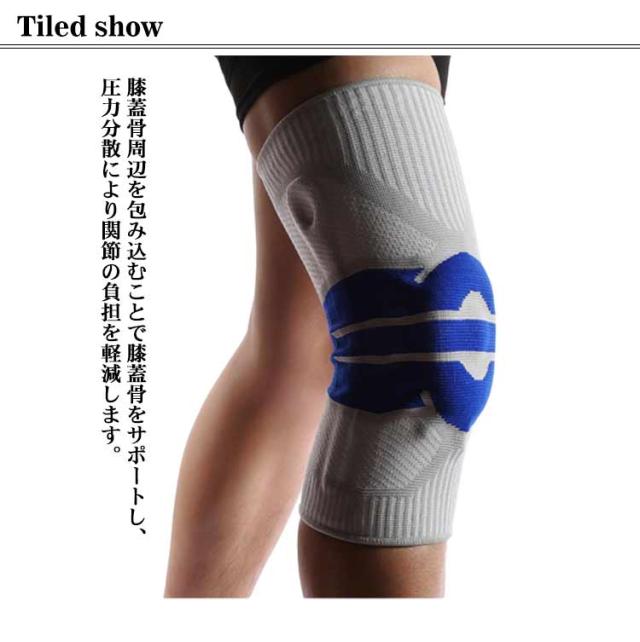 | O型シリコーンリング内蔵×両サイドに配置された形状記憶ボーンはスプリングデザインで強圧ヒザサポーター! 膝蓋骨周辺を包み込むことで膝蓋骨をサポートし、圧力分散により関節の負担を軽減します。 伸縮性に富んだニット製法で編み上げられ、膝関節を適切な圧力でサポートし、運動時の安定性をもたらします。 内部には滑り止めシリコンを装着、膝サポーターにおける悩み「ズレ」を防いで快適に使用できる機能です。 | |