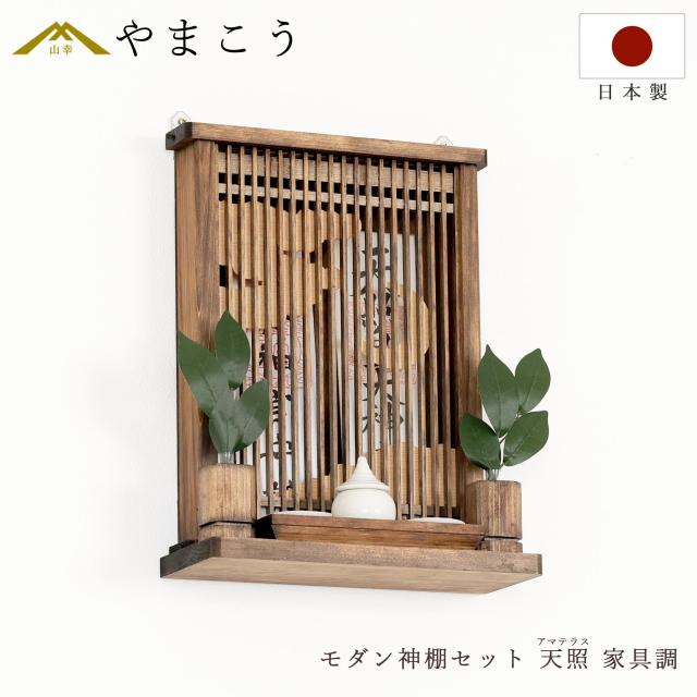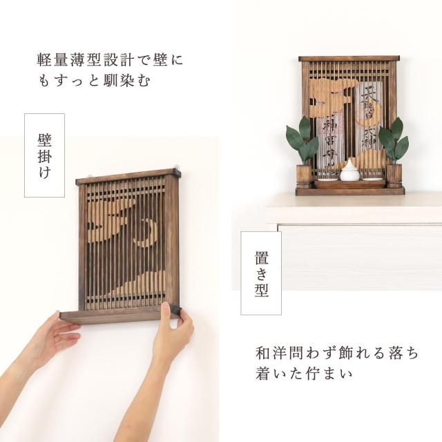 家具調 モダン神棚 アマテラス ミカヅキ ミニ 天照らす三日月 箱宮 お札立て 神具セット コンパクト 壁掛け 御朱印帳 お守り入れにも