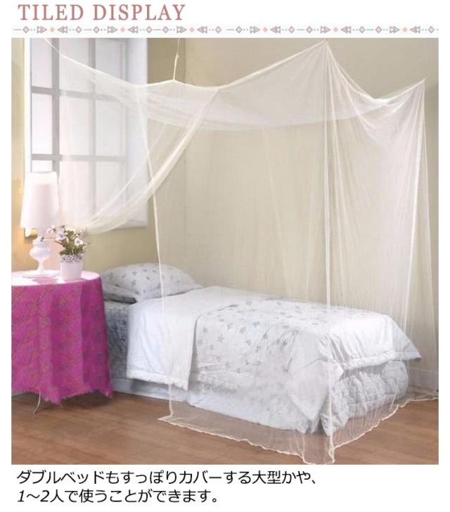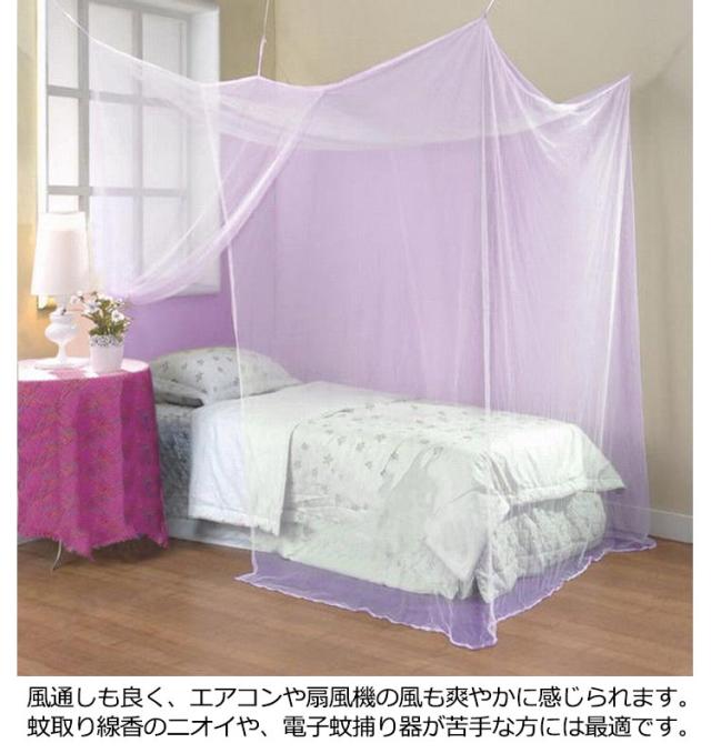 | ゆったり使える大判サイズの蚊帳。 ダブルベッドもすっぽりカバーする大型かや、1〜2人で使うことができます。 出入りに便利な開閉できるタイプ、使いやすさ◎ 普通の蚊帳に比べて、目が細かく、蚊などの侵入を防ぎやすくなっております 風通しも良く、エアコンや扇風機の風も爽やかに感じられます。 蚊取り線香のニオイや、電子蚊捕り器が苦手な方には最適です。 コンパクトに収めるから、海外旅行など時も便利に持ち運べます。 | |
