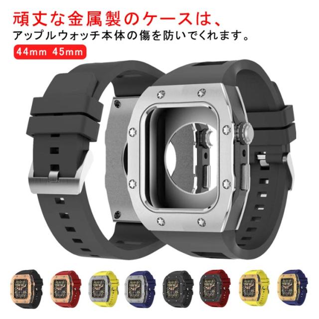 apple watch アップルウォッチ バンド ベルト カバー ステンレス ケース 一体型 メンズ ステンレス series8 7 6 SE 5 4用 44mm 45mm用 スポーツ アウトドア ビジネス 保護 堅牢 頑丈 耐衝撃 保護カバー