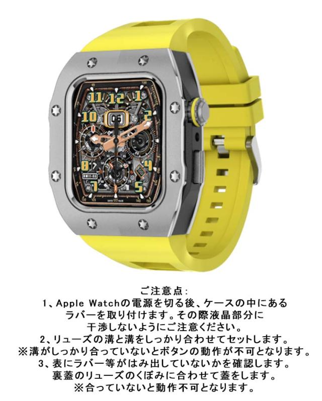 | サイズについての説明 | サイズ:【対応機種】 Apple Watch Series 8 7 (45mmのみ ) Apple Watch Series 6 SE 5 4 (44mmのみ) |