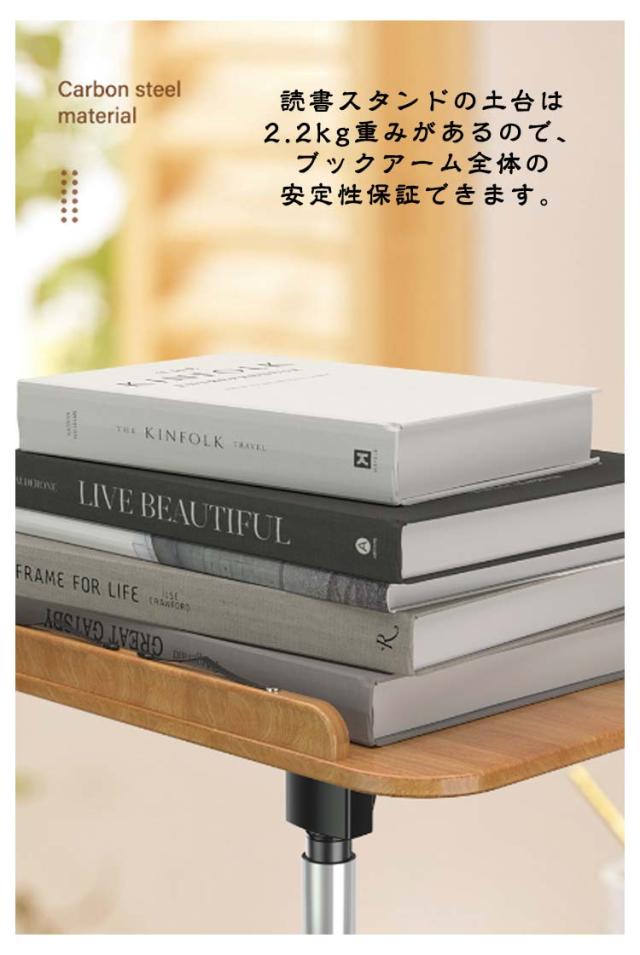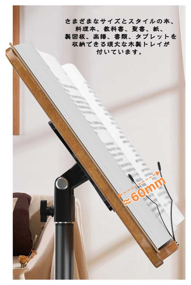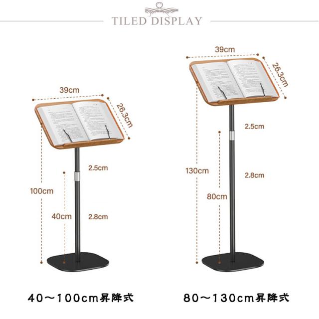 | ブックスタンドやPCスタンド、サイドテーブル、絵描きスタンドなどとして使えます。木製のブックスタンドです。 【高品質素材】ポールとベースは炭素鋼で作られており、防錆性があり、耐久性と安定性に優れています。 本棚パネルは、防湿防カビ効果があり、独特の臭いがなく、耐久性があり、耐荷重性に優れたオーク材でできています。 【多角度調整】少ない力でスムーズに高さを調整できます。多角度調整可能:メタルポール調整高さ:40〜100cm昇降式 80〜130cm昇降式。厚板の傾斜角度: 上下向き180°、ピボット機能:左右に360°回転。いつでもどこでもモバイル利用。 【幅広い用途】さまざまなサイズとスタイルの本、料理本、教科書、聖書、紙、製図板、楽譜、書類、タブレットを収納できる頑丈な木製トレイが付いています。 オフィス、キッチン、教室、図書館、寝室、その他あらゆる場面で使用できます。オリジナルのアクセサリーはデザインがシンプルで、家庭環境に簡単に統合できます。 【優れた安定性】読書スタンドの土台は2.2kg重みがあるので、ブックアーム全体の安定性保証できます。また、スタンド本体や土台は高品質の炭素鋼を採用して、耐久性が高いです。耐荷重は7kgまでです。 【ハンズフリー読書ラック】両手で自由にページをめくります。 腕、首、頸椎をリラックスさせながら読書をお楽しみください。大人も子供も使えます。 | |