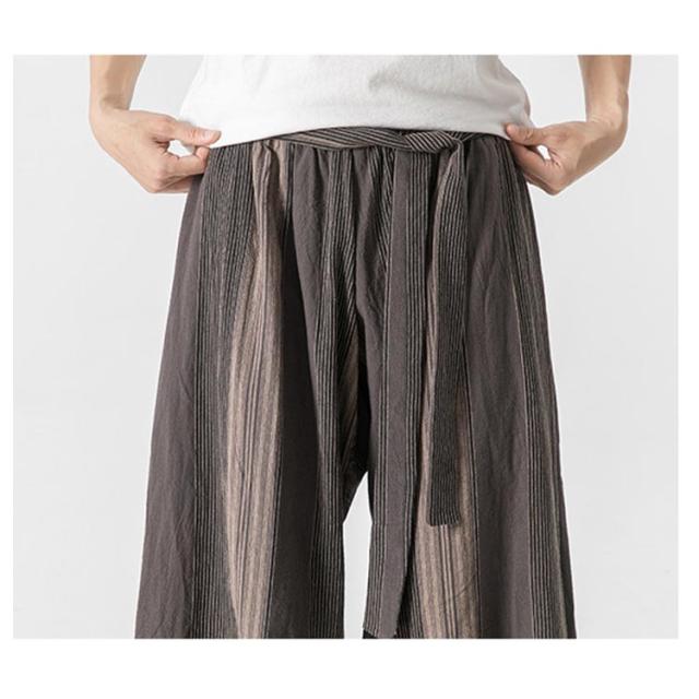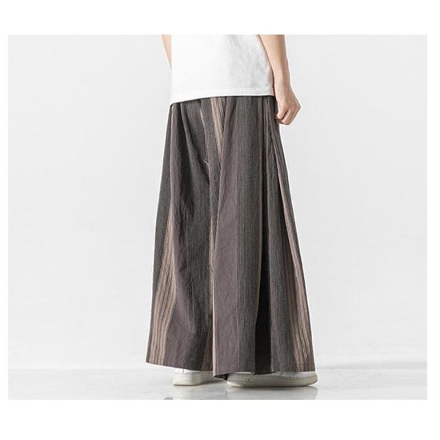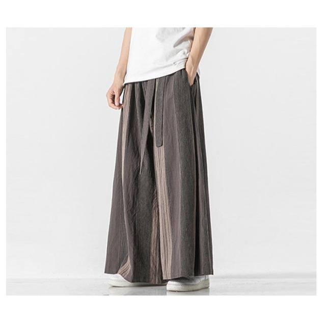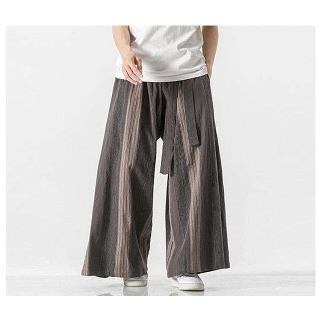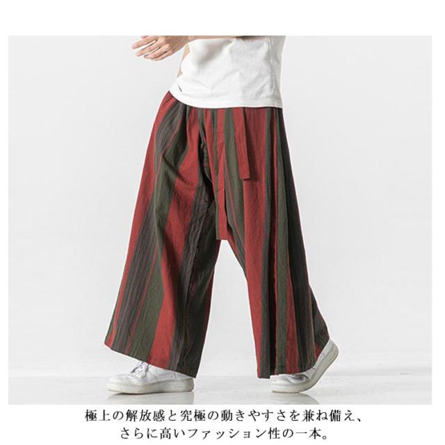 サルエルパンツ メンズ ガウチョパンツ リネン パンツ 麻 綿麻 夏 綿 麻 ワイドパンツ メンズ 涼しいズボン ゆったり ストライプ柄 夏ズボン メンズファッション 夏服 清涼な着心地 夏 ボトムス 袴パンツ イージーパンツ ワイド 春服 春夏 ボトムス 送料無料