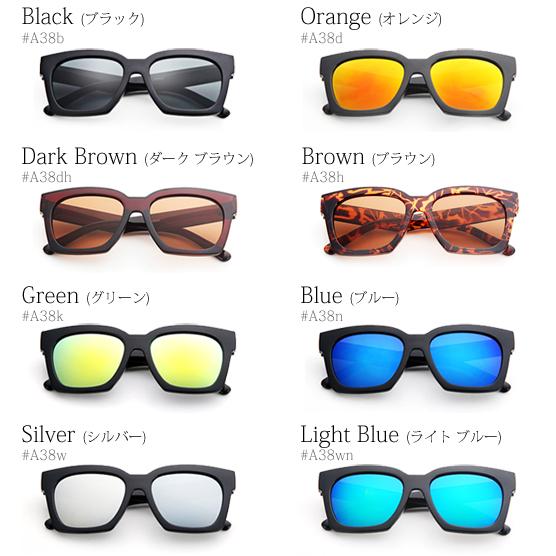ウェリントン型 サングラス メンズ カラフル 偏光グラス カッコいい [8色]#A38 M便 BL