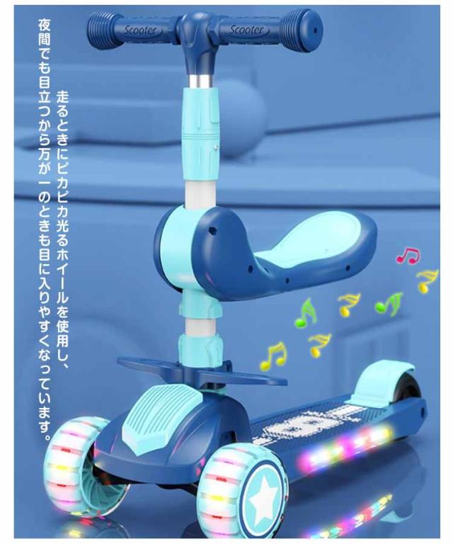 | 子供向けの座って乗れるキックボード 子供の身長により、63cm、68cm、73cm、78cmの4段階に調節できます。 走るときにピカピカ光るホイールを使用し、夜間でも目立つから万が一のときも目に入りやすくなっています。 後輪についているフットブレーキを片足で軽く踏むことで、スピードを簡単に調節でき、安全性とオシャレを両方も実現します。 ハンドルは人間工学に基づいた、T字型バーグリップがあるので、しっかりとした快適性と耐性があります、リーンステア機能付きで、体重をかける向きによって左右方向を変えられ、バランス感覚と運動神経を促進します。 場所を取らなくてコンパクトなので、玄関などの室内保管や車のトランクに置いても問題ないです。 シートの設計で、子供たちはペダルの上に座ることができます。 | |