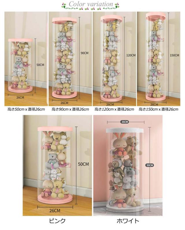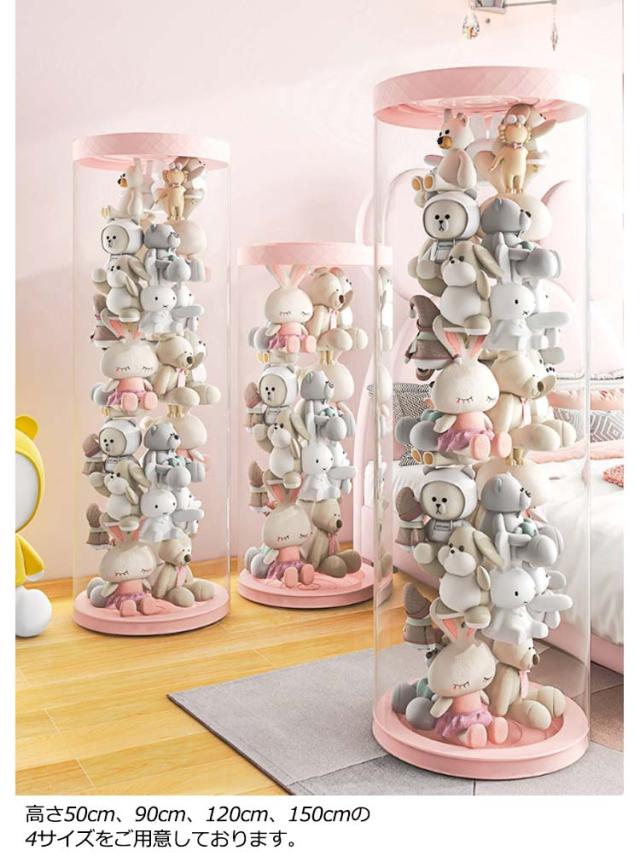 | ぬいぐるみを華やかにディスプレイできる、透明な収納ケースです。 上部にはカバーが付いており、ほこりや汚れの付着を防げます。 高さ50cm、90cm、120cm、150cmの4サイズをご用意しております。 中が見えてぬいぐるみを取り出しやすく、見せる収納にも活用できます。 シンプルなデザインで、リビングや洗面所にさりげなく置いておけます。 | |
