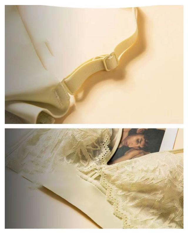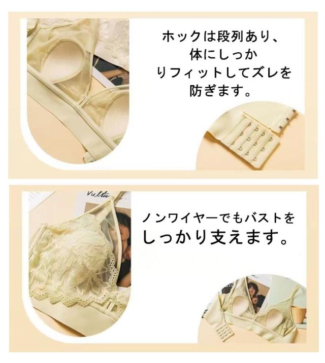 | 大きな胸を小さく見せるブラ!スッキリさせて痩せ見え。 上品で可愛らしいレースがポイント ノンワイヤーでもバストをしっかり支えます。 脇高設計でハミ肉を予防します。 脇や背中に流れるのを防ぎます。 大きなサイズのブラが欲しい。 ホックは段列あり、体にしっかりフィットしてズレを防ぎます。 ワイヤーが苦手な方に。 バスト全体をすっぽり覆い、広い範囲でホールドするので、下垂の原因となるユレも抑えます。 | |