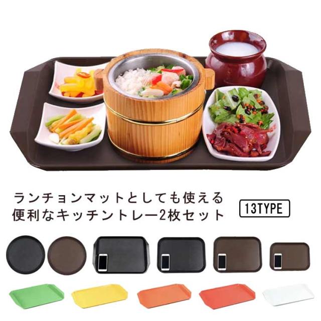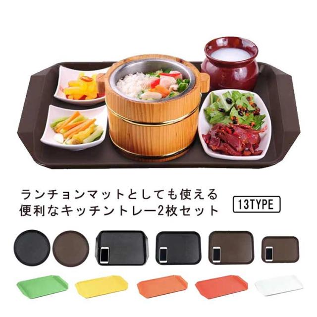キッチントレー ランチトレー キッチン収納 滑り止め トレイ 2枚セット 長方形 丸 円型 ノンスリップ カフェ カフェトレー お盆 カフェトレイ 軽量 シンプル 北欧 お洒落 ランチョンマット 無地 すべらない 食洗器対応 シンプル 家庭用 飲食店 業務用 ギフト 送料無料