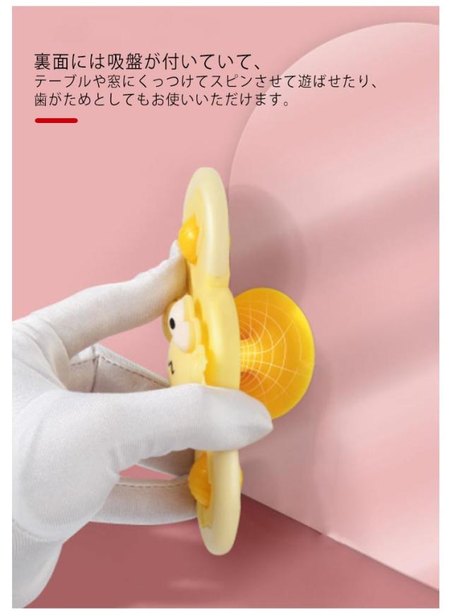 | 吸盤でくっつけてクルクル回して遊べるカラフルなベビートイです。 3点セット あかちゃんが舐めたり噛んだりしても安全安心な素材でつくられています。 裏面には吸盤が付いていて、テーブルや窓にくっつけてスピンさせて遊ばせたり、歯がためとしてもお使いいただけます。 いろんなものに触れたい好奇心が増す0〜3歳児に最適な知育玩具です。見て、触れて、子どもが集中して手放せなくなるアイテムがそろっています。 おうちではもちろん、車の中、外出先でも大活躍のおもちゃです。 出産祝いやお誕生日プレゼントなど、贈り物にも喜ばれる生後10ヶ月から使えるベビーおもちゃです。 | |