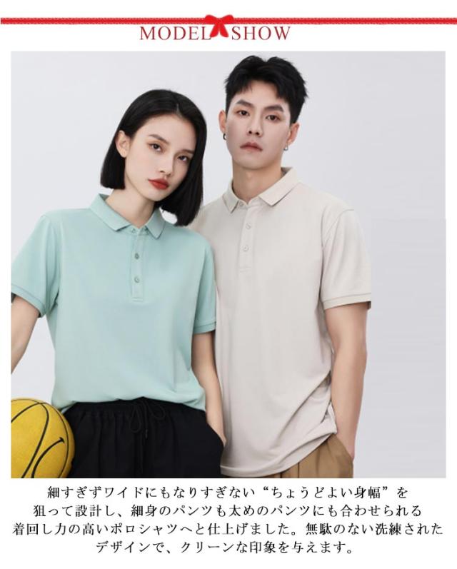 | シンプルデザインで着回しが楽しめる高機能ポロシャツ。【S-6XL】【男女兼用】 細すぎずワイドにもなりすぎない“ちょうどよい身幅”を狙って設計し、細身のパンツも太めのパンツにも合わせられる着回し力の高いポロシャツへと仕上げました。無駄のない洗練されたデザインで、クリーンな印象を与えます。 目の細かい鹿の子生地でドライなタッチの生地感がポイント。 見た目の印象のみならず、実際に抗菌防臭機能と接触冷感機能を併せ持った特殊な生地を用いているため、汗ばむ季節の中でも涼しく清潔にご着用いただける一着となっております。 また、伸縮性があるので動きやすい。 メンズ、レディースを問わず普通サイズから大きいサイズまで幅広いサイズ展開。 | |