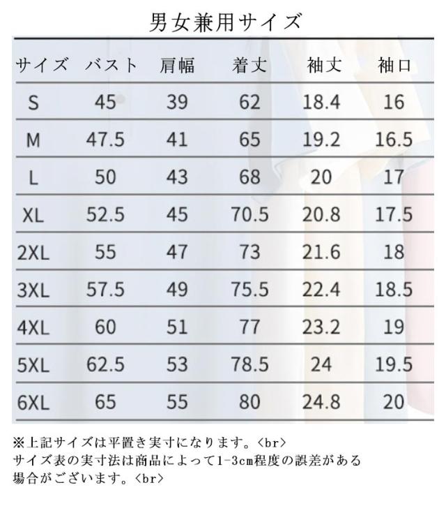 | サイズについての説明 | S M L XL 2XL 3XL 4XL 5XL 6XL |