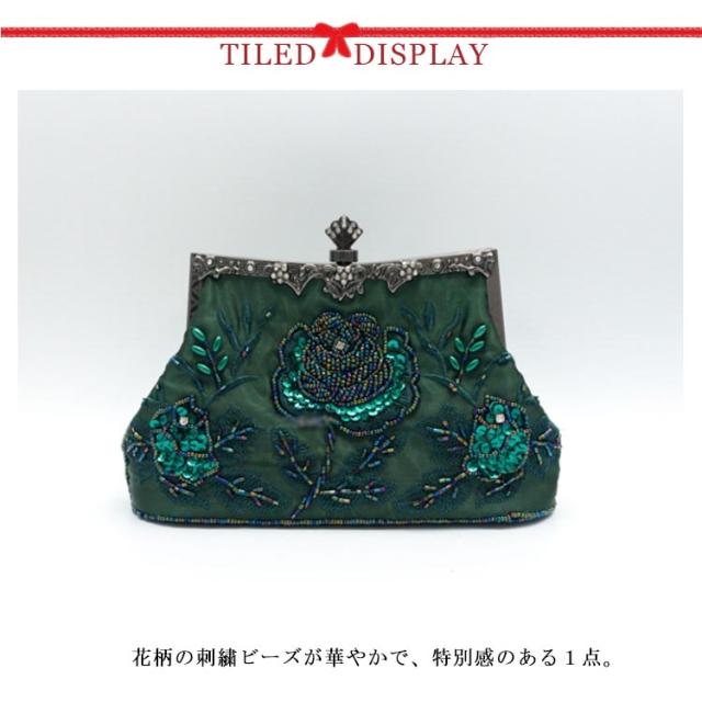 | ビーズをたっぷり使った大きめパーティーバッグ。【全9色】【チェーン付き】 花柄の刺繍ビーズが華やかで、特別感のある1点。 ハンドバッグとしても、取り外し可能な付属のチェーンをつけてショルダーバッグとしてもお使いいただける2wayタイプです。 シンプルなワンピースにもキラキラな刺繍ビーズで華やかにしてくれます。 収納スペースが広めなのでご祝儀袋、財布、スマホ、コスメ、ハンカチなど必要な品々をしっかり収納。荷物が多めのときにも安心のデザインです。 お食事会やちょっとしたお呼ばれシーン、結婚式の二次会や披露宴・謝恩会・舞台での演奏会や発表会などのドレスアップシーンにオススメの魅力的なクラッチバックです♪ | |