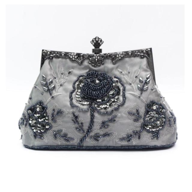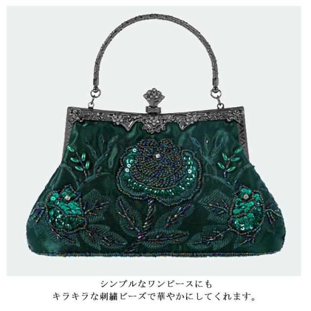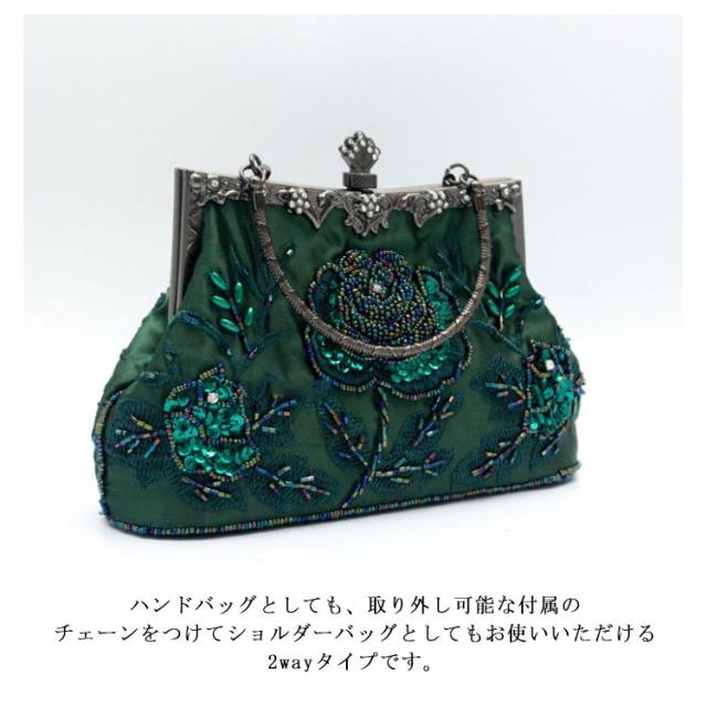 パーティーバッグ 大きめ ビーズ 刺繍 花柄 ハンドバッグ がま口 クラッチバッグ 結婚式 バッグ ショルダーバッグ 2way パーティー パーティ バッグ 二次会 披露宴 謝恩会 お呼ばれ 演奏会 発表会 レディース 黒 紺 シルバー おしゃれ 【送無】