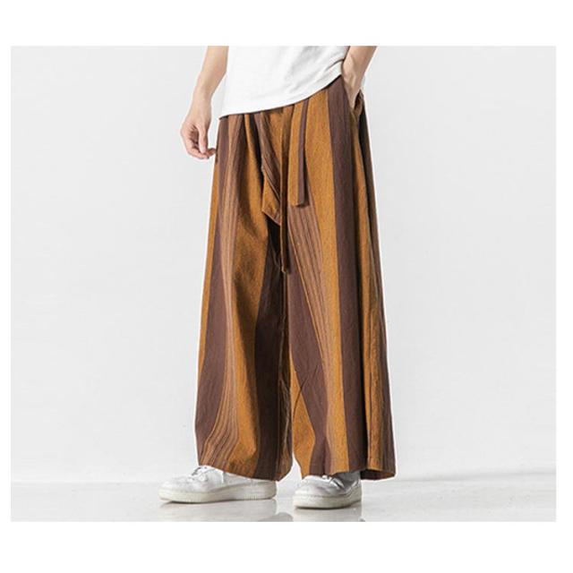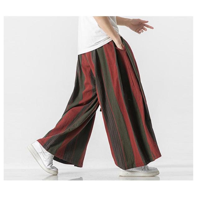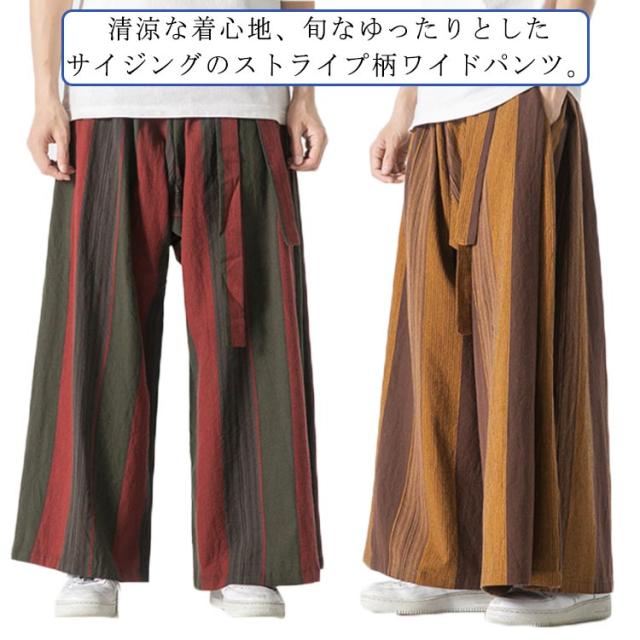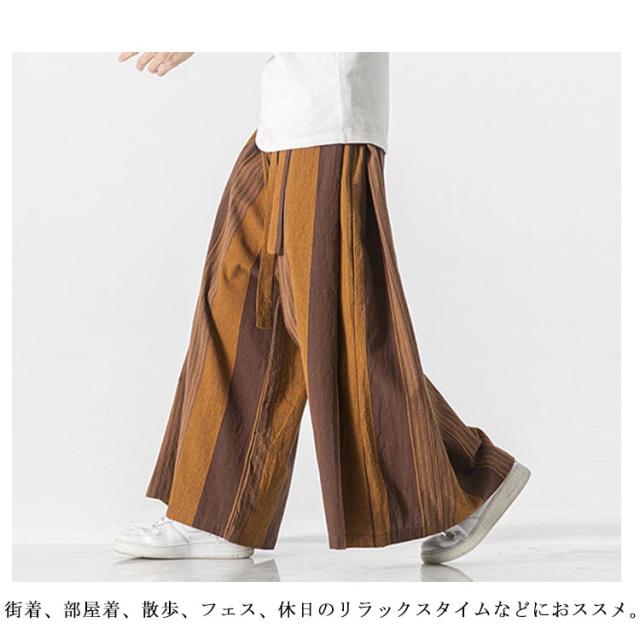 サルエルパンツ メンズ ガウチョパンツ リネン パンツ 麻 綿麻 夏 綿 麻 ワイドパンツ メンズ 涼しいズボン ゆったり ストライプ柄 夏ズボン メンズファッション 夏服 清涼な着心地 夏 ボトムス 袴パンツ イージーパンツ ワイド 春服 春夏 ボトムス 送料無料