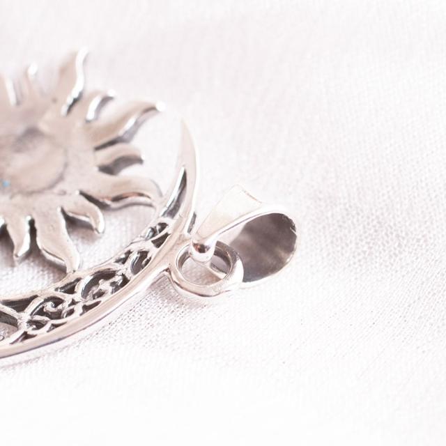 シルバー ペンダントトップ -太陽と月 / ペンダントトップ、アクセサリ、ペンダント、ゴールド、太陽、月、 アクセ 【インドとアジアのアクセサリー