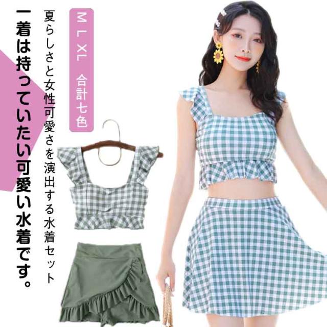 水着 高校生 レディース ビキニ セパレート 体型カバー 韓国 タンキニ 上下セット 海 プール 温泉 夏 みずぎ 学生 少女 体型カバー サマー 小胸も安心 パッド付き 女性用 大人 韓国風 可愛い 露出控えめ チェック柄 夏休み 旅行 スカート ギフト プレゼント 送料無料