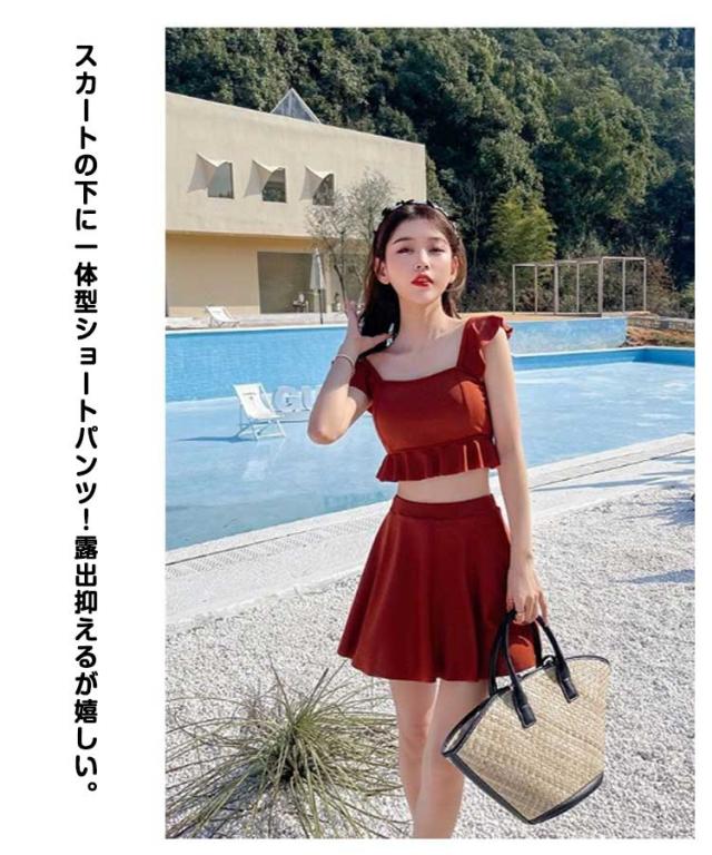 | 夏らしさと女性可愛さを演出する水着セット 裾はフリルデザイン、裾が広めなので脚の細見せ効果も期待できます。 シンプルなお色味のため、幅広い用途にご活用いただけます。一着は持っていたい可愛い水着です。 固定されたパッド付き、ずれ落ちる心配はありません。届いてすぐ使える綺麗なバストをメイクストレスフリーで快適!ワイヤー苦手でもOK! スカートの下に一体型ショートパンツ!露出抑えるが嬉しい。 便利なセパレートデザイン、トイレも便利♪ 海水浴、プール、ビーチ、リゾート、GW、デートに♪春夏だけでなく、秋冬の海外旅行用にも最適! シンプルで飽きない設計、長くご愛用いただけます。 | |