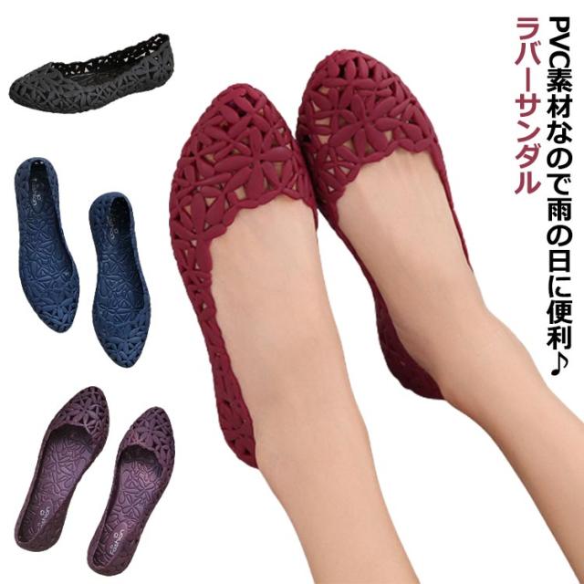ラバーサンダル レディース フラットシューズ パンプス ローヒール ぺたんこ フラットソール 花柄 水陸両用 歩きやすい フラワー柄 ママシューズ 婦人靴 フラットサンダル リゾート ビーチ メッシュ レインシューズ